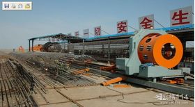 山東魯源全自動鋼筋籠滾焊機(jī)中鐵十九局施工現(xiàn)場,滾焊機(jī)調(diào)試完成